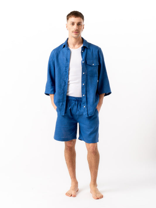 Camisa de lino Abotonada KAI Azul para Hombre