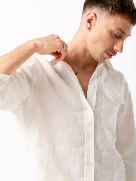 Camisa de lino Abotonada KAI Blanca para Hombre
