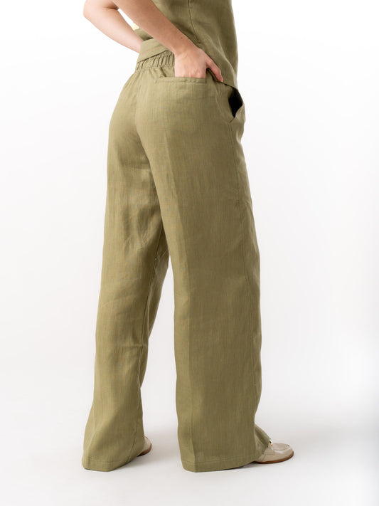 Pantalón de lino Elastizado VIÑEDO Verde Oliva