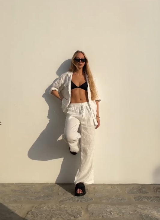 Pantalón de lino elastizado VIÑEDO Blanco