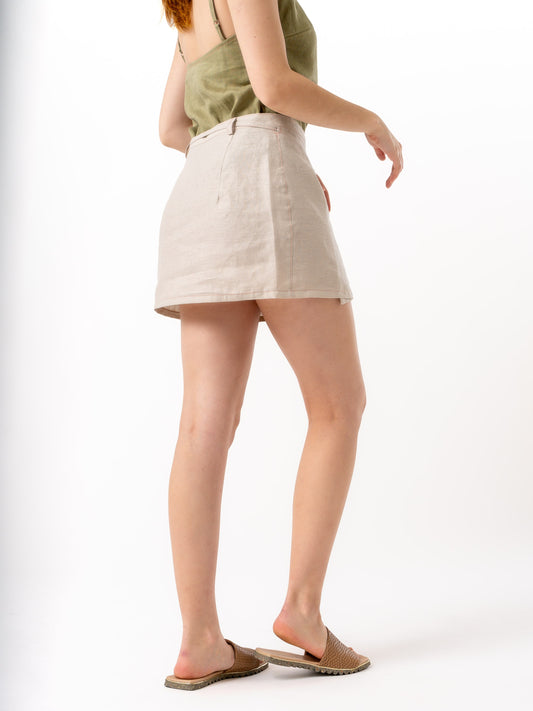Pollera de lino Mini Cruzada OLA Beige