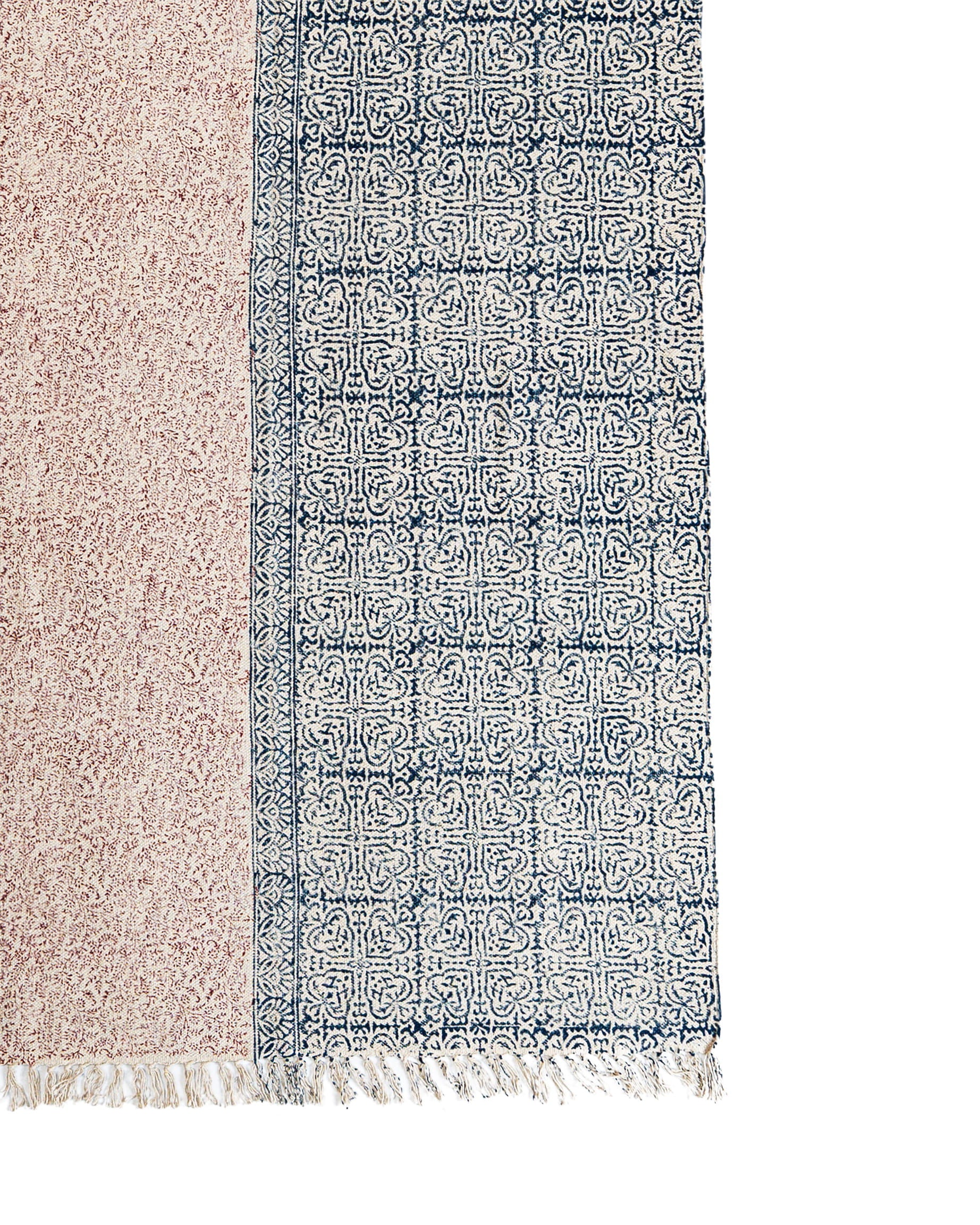 Cada pieza fue estampada a mano en Jaipur, India, utilizando una técnica ancestral llamada “Block Print”, realizada con bloques de madera tallados con precisión.
