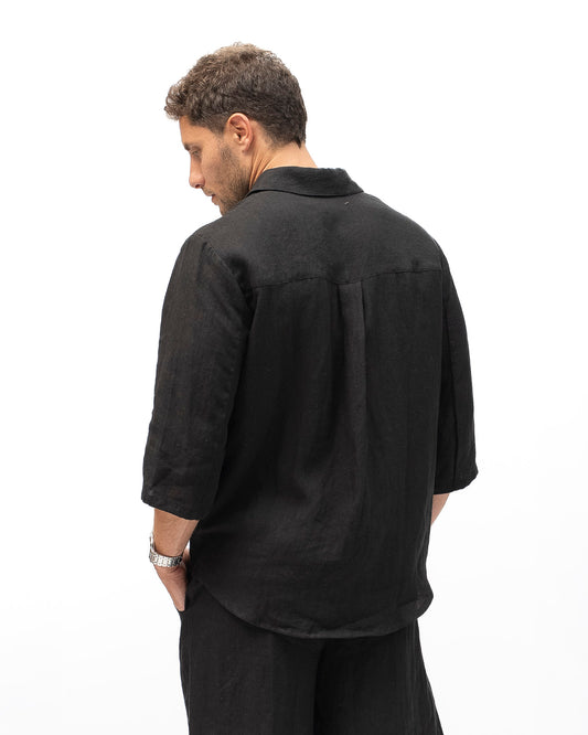 מכופתרת "ערב" פשתן לגבר שחור