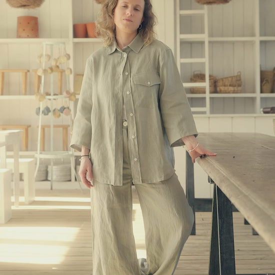 The "Gaya" shirt has ¾ sleeves, a pocket on the left side, and a pleat at the back. It's one you'll want to wear from sunrise to sunset, and I tell you this from experience. Effortlessly elevate your everyday outfit with this versatile button-up shirt.
