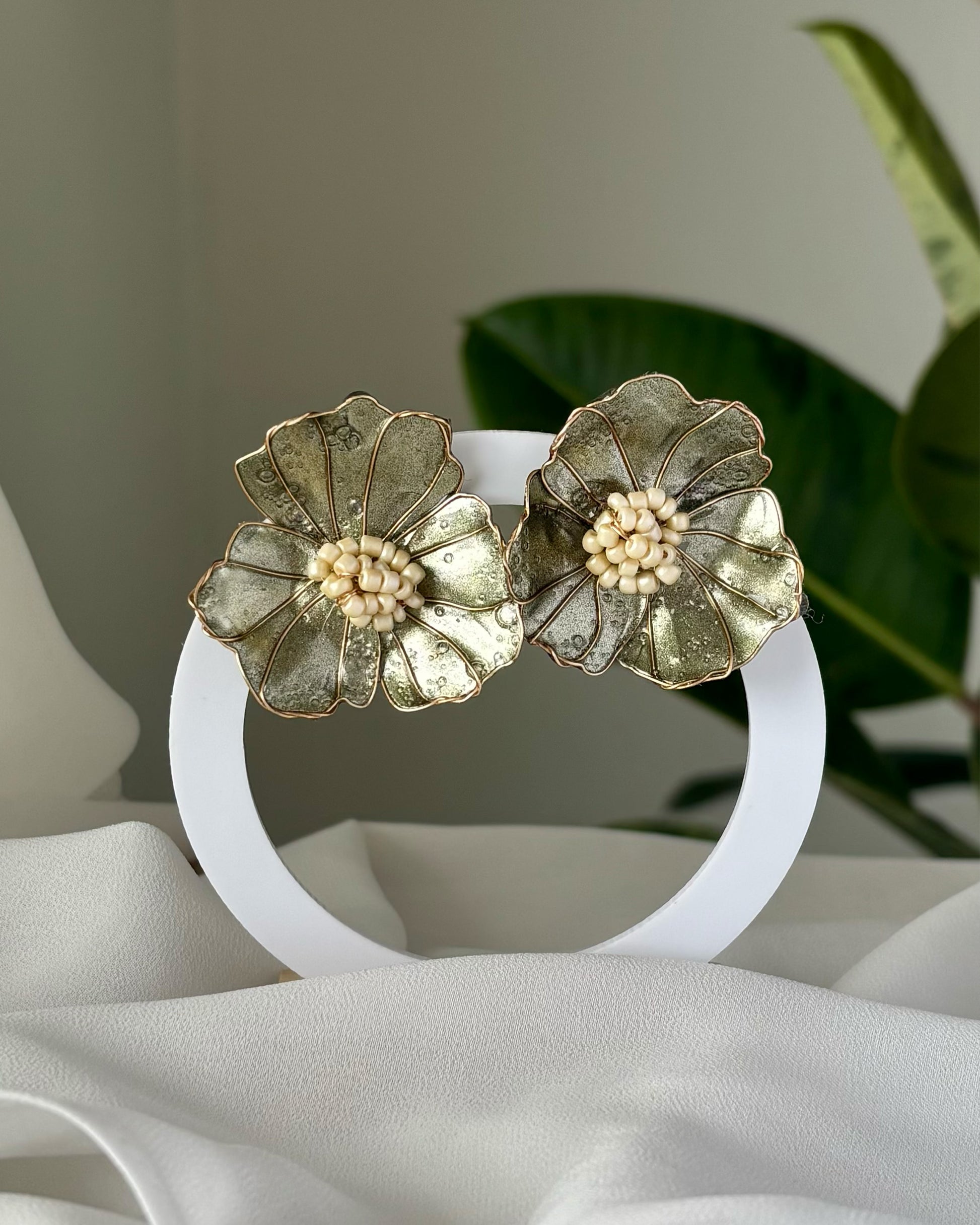Caravanas hechas a mano, de diseño liviano y delicado, pensadas para aportar luz y movimiento a cualquier look. Cada pieza es única, con una estética etérea y un brillo sutil que recuerda al vidrio, pero con una resistencia y ligereza ideales para el uso diario.